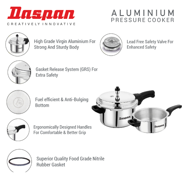 Looking for a reliable and versatile kitchen companion? The Daspan Duo Pressure Cooker Set offers two essential sizes – a 3-liter and a 2-liter cooker – to cater to your cooking needs, from large family meals to quick solo servings. Crafted from high-grade aluminum for rapid, even heat distribution, these cookers will cut your cooking time while delivering perfect results every time.